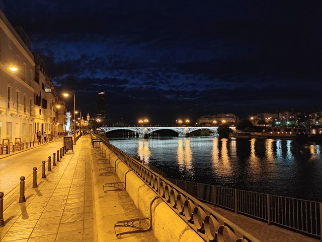 El crucero nocturno también ofreció otra perspectiva de Triana, con las luces de la calle Betis reflejadas en el río y las terrazas iluminadas. La combinación de la brisa del Guadalquivir y el murmullo de la ciudad nos hizo disfrutar del paseo de manera distinta.
