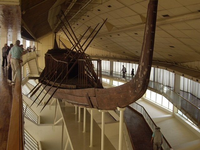 Muy cerca de la Gran Pirámide se descubrió en 1954 un hallazgo sorprendente: la barca solar de Keops. Estaba enterrada en una gran fosa de piedra y desmontada en más de 1.200 piezas, como si fuera un gigantesco puzle de la antigüedad. Los arqueólogos tardaron años en reconstruirla y hoy puede visitarse en el museo que se levantó junto al recinto.